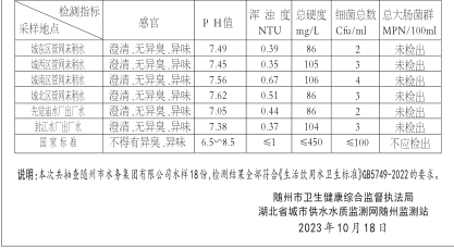 隨州市城市供水十月水質(zhì)公報(bào)