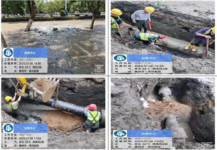 7月6日上午10點(diǎn)20分,客服人員接到群眾的熱線電話,告知清河路清河庭院附近路面大量跑水,運(yùn)維中心搶修人員接到消息迅速前往,十五分鐘到達(dá)現(xiàn)場(chǎng),通過專業(yè)技能和判斷,確定為DN400主管道爆破,測(cè)漏人員立即協(xié)助精準(zhǔn)定位漏點(diǎn),盡量減少開挖面,為搶修爭(zhēng)取時(shí)間,該管道會(huì)直接影響周邊黃龍五隊(duì)、清河庭院、東方小區(qū)、楚苑小區(qū)、雙橋家具大市場(chǎng)等小區(qū)和企業(yè)大面積水小或停水??崾铍y耐,為盡快解決群眾用水問題,維修人員在35°高溫下連續(xù)奮戰(zhàn)8小時(shí),于當(dāng)晚7點(diǎn)30分恢復(fù)正常供水,及時(shí)避免了周邊居民下班后正常生活用水的問題。