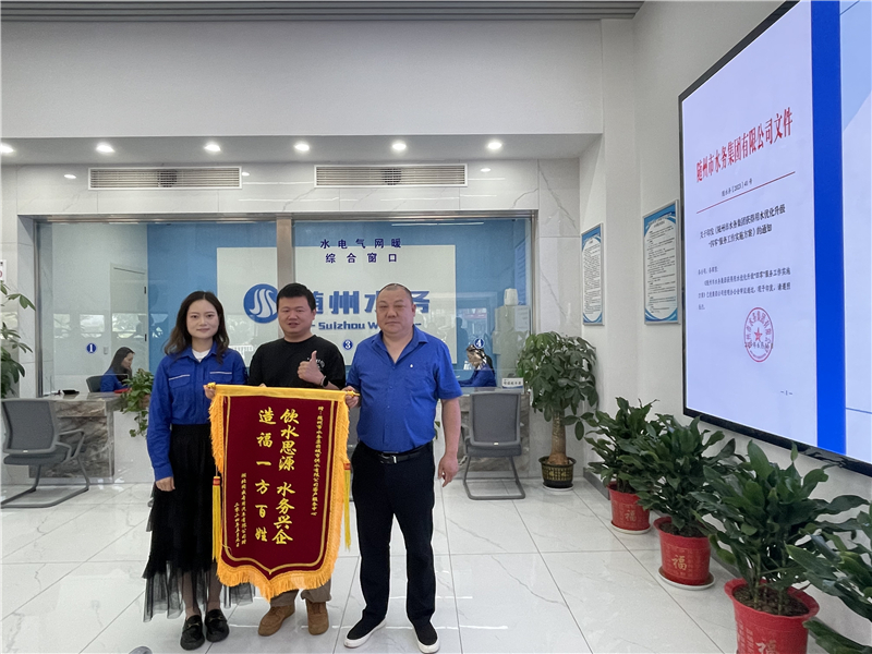 “感謝你們的及時(shí)檢測(cè),為我們公司解決了難題?!?月10日,隨州市水務(wù)集團(tuán)收到了來(lái)自湖北同威專用汽車有限公司贈(zèng)送的一面錦旗。這面錦旗上書(shū):“飲水思源、水務(wù)興企、造福一方百姓”,充分展現(xiàn)了企業(yè)用戶對(duì)水務(wù)集團(tuán)全心全意為民服務(wù)的感激之情。