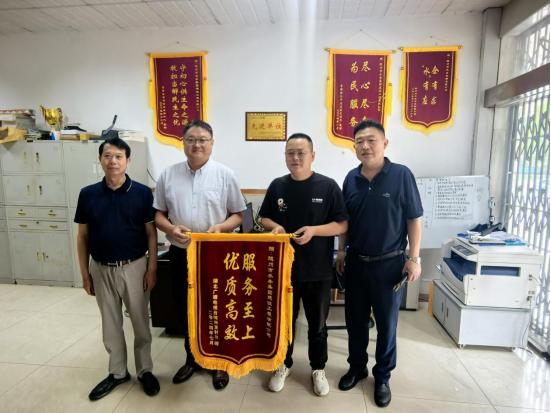近日,湖北廣播電視臺隨州發(fā)射臺相關(guān)負責人將一面印有“服務(wù)至上,優(yōu)質(zhì)高效”的錦旗送至隨州市水務(wù)集團建設(shè)工程有限公司,以感謝在隨州發(fā)射臺用水接入項目過程中的優(yōu)質(zhì)高效的供水服務(wù)。