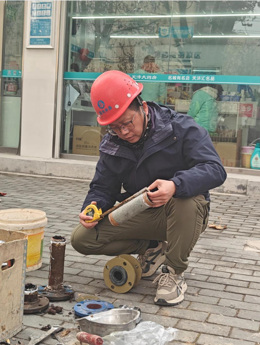 20257月,又一嚴(yán)峻考驗(yàn)降臨,交通大道兩水段突發(fā)區(qū)域性停水。故障就是沖鋒號(hào),劉吉再次主動(dòng)請(qǐng)纓,率隊(duì)緊急出動(dòng),戶外溫度直逼40攝氏度。頂著烈日,劉吉帶領(lǐng)隊(duì)員們,沿著疑似管線段進(jìn)行地毯式徒步排查,最終確定故障點(diǎn)位于一處橋梁下方的穿橋主管道。