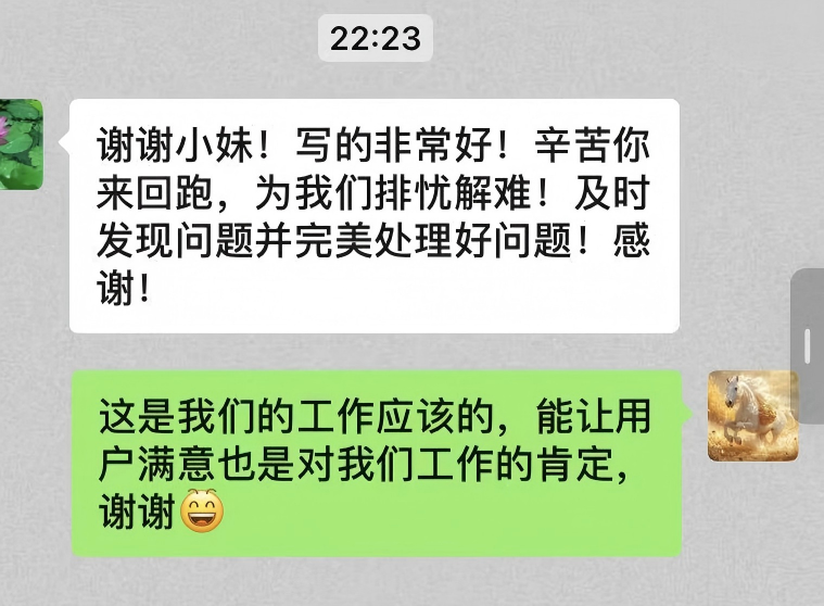 這位用戶表示,要將隨州水務(wù)員工的專業(yè)與熱情分享給身邊,直言你們工作時(shí)熱情的態(tài)度值得我們學(xué)習(xí)。面對(duì)用戶的盛贊,網(wǎng)格員一句你再表?yè)P(yáng)我就要飄了的俏皮回應(yīng),讓這場(chǎng)服務(wù)與被服務(wù)的互動(dòng)更添溫情。